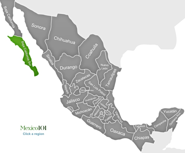 If you want to see the brilliant blue waters of the sea contrast with the harshness of the arid desert, you need to visit Baja California Sur. Situated in the north-western corner of Mexico, Baja California Sur is a state surrounded by the waters of the Pacific Ocean, Cortez Sea as well as the Gulf of California. Located to the south of the Baja California Peninsula, the state is sparsely populated but offers tourists the opportunity of enjoying stunning vistas of the sea in close embrace with the shoreline as well as indulging in various adventurous activities like mountain biking, hiking, snorkelling, diving, kayaking, snorkelling and surfing.